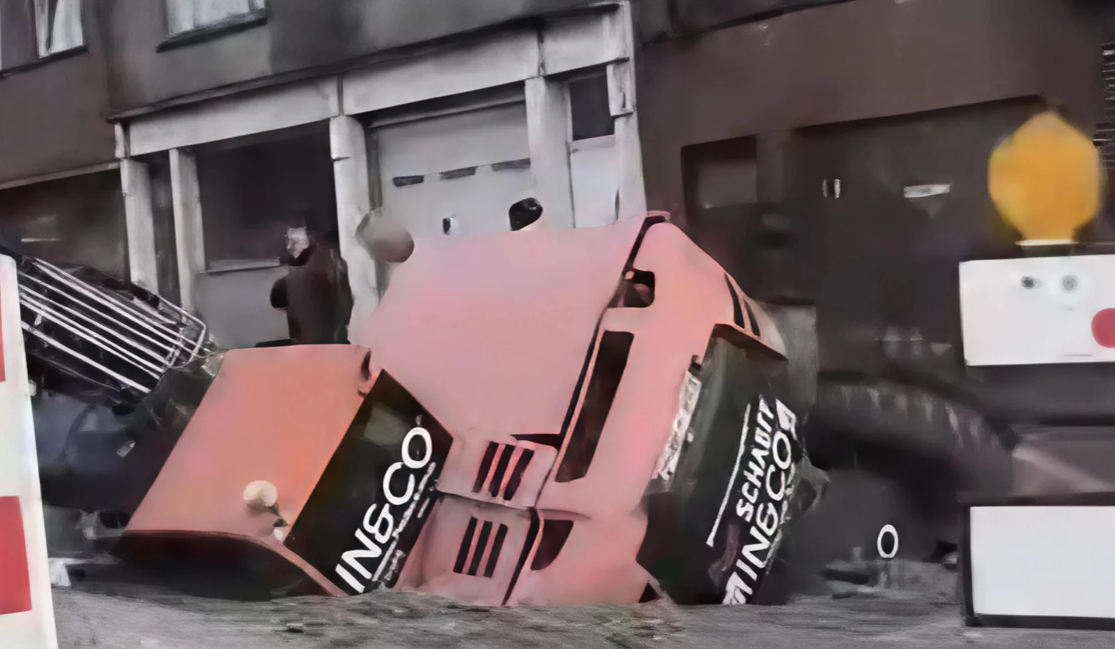 (PHOTOS) Accident impressionnant à Rebecq : un véhicule soulevé par un camion-grue