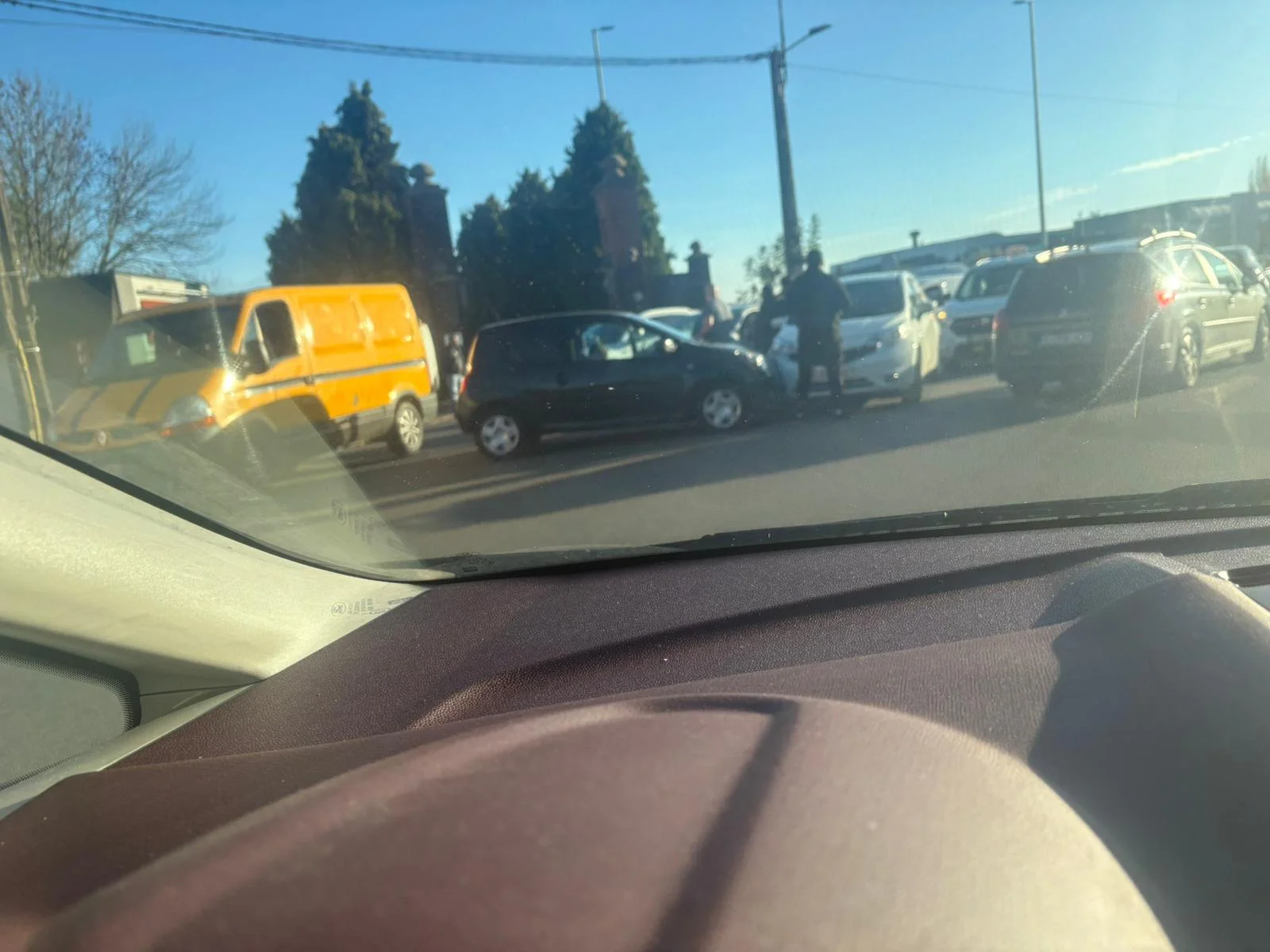 Un accident s’est produit cet après-midi sur la rue de Marchienne à Jumet, juste en face du cimetière, sur la portion qui mène vers la place du Ballon. Selon les premiers témoignages, un taxi et deux autres véhicules seraient impliqués. Le conducteur du taxi semble particulièrement énervé et la situation dégénère verbalement sur place.