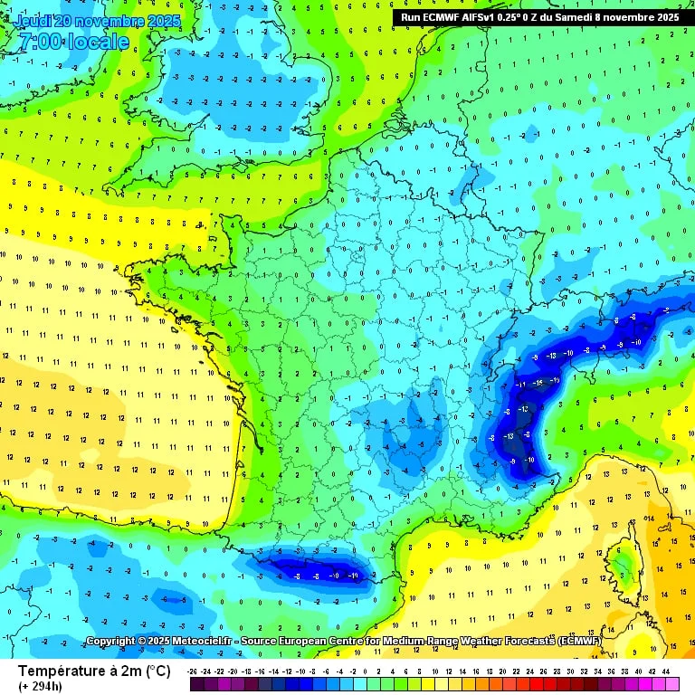 Mais cette accalmie pourrait bien être de courte durée. Les modèles à moyen terme envisagent en effet une baisse progressive du mercure à partir de la mi-novembre, avec un changement de régime plus marqué autour du 21-22 novembre. Les températures nocturnes pourraient alors avoisiner les 0°C en plaine, et peiner à dépasser quelques degrés en journée. Dans ce contexte plus froid, les premières chutes de neige pourraient faire leur apparition, en particulier sur les hauteurs, mais pas uniquement.