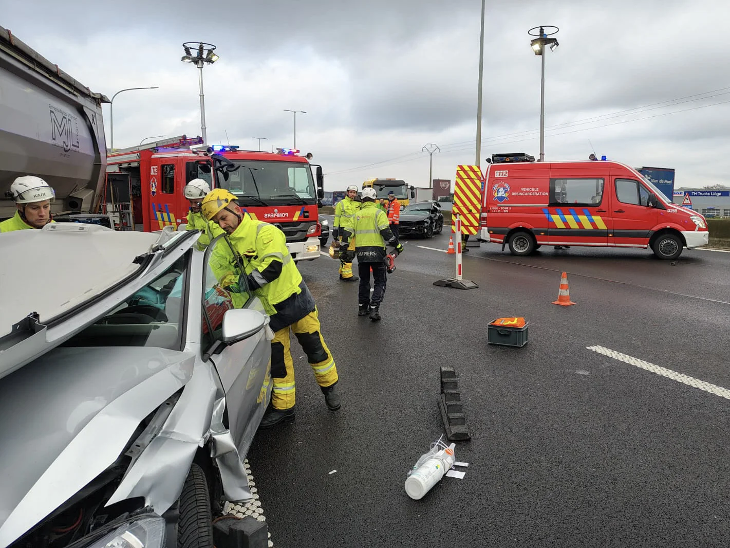 les équipes de désincarcération de la caserne principale et de Flémalle,