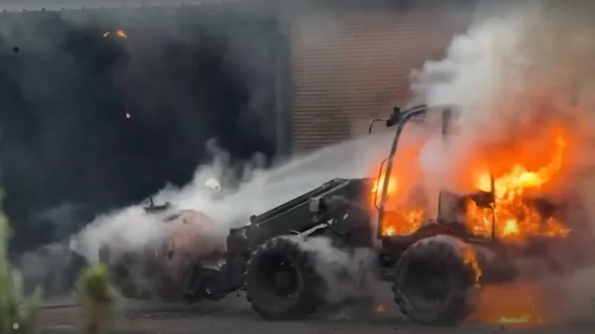 L’explosion, survenue peu avant 10h, a touché une chargeuse sur pneus, complètement détruite par le feu. Une autre personne présente sur le chantier a été blessée et prise en charge par les secours. L’origine de l’incident n’a pas encore été déterminée.