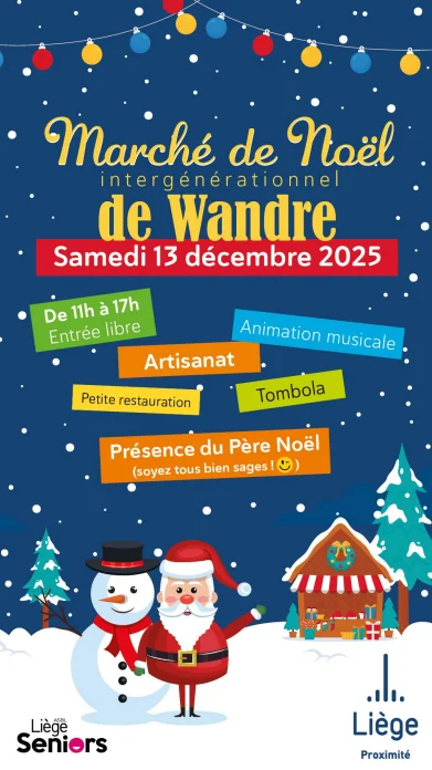 Le Service InterG-Seniors de la Ville de Liège organise un marché de Noël chaleureux où se mêlent artisanat, animations et esprit de convivialité. Tout au long de la journée, les visiteurs pourront découvrir les créations uniques réalisées par les cotisants : décorations, idées cadeaux, objets faits main… Un véritable petit village hivernal prendra vie au Pôle Culturel de Wandre.
