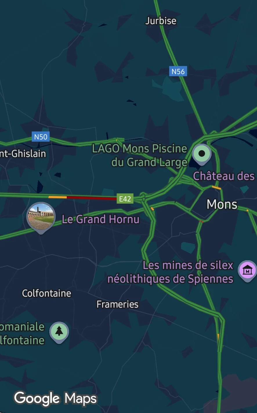 Selon le CIC Hainaut, les faits ont été signalés vers 19h15 à hauteur de Jemappes, dans la province de Hainaut, sur l’axe Valenciennes (France) – Mons – Bruxelles. Les deux accidents sont survenus à proximité du point kilométrique 61,8, compliquant fortement la circulation dans cette zone déjà très fréquentée aux heures de pointe.