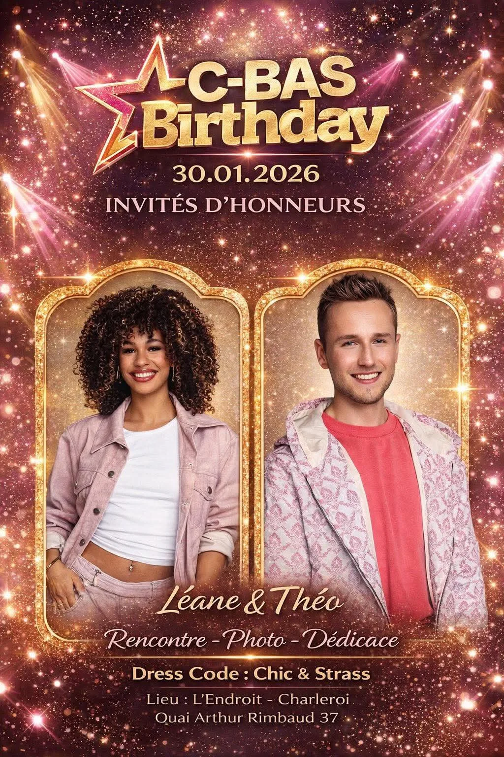 Le C-BAS Birthday s’annonce comme l’un des événements incontournables de ce début d’année à Charleroi. À cette occasion, Léane et Théo, figures marquantes de la Star Academy, seront accueillis pour la première fois en Belgique à l’Endroit Charleroi, offrant aux fans une rencontre privilégiée.
