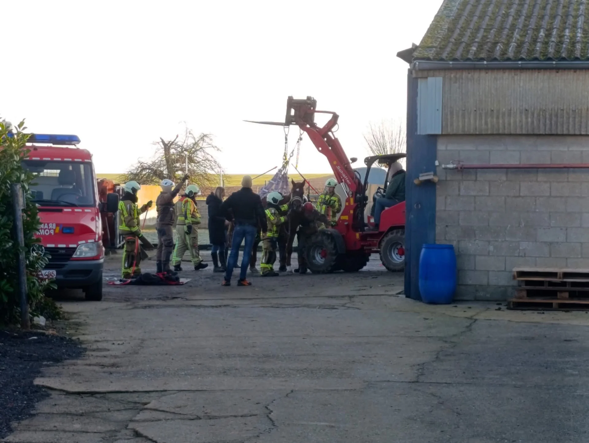 Ce matin, une opération délicate a mobilisé l’unité Animals Rescue Team et une autopompe à Pousset (Remicourt) pour secourir une jument en détresse. Âgée de 27 ans, l’animal était coincé dans son box et ne parvenait plus à se relever.