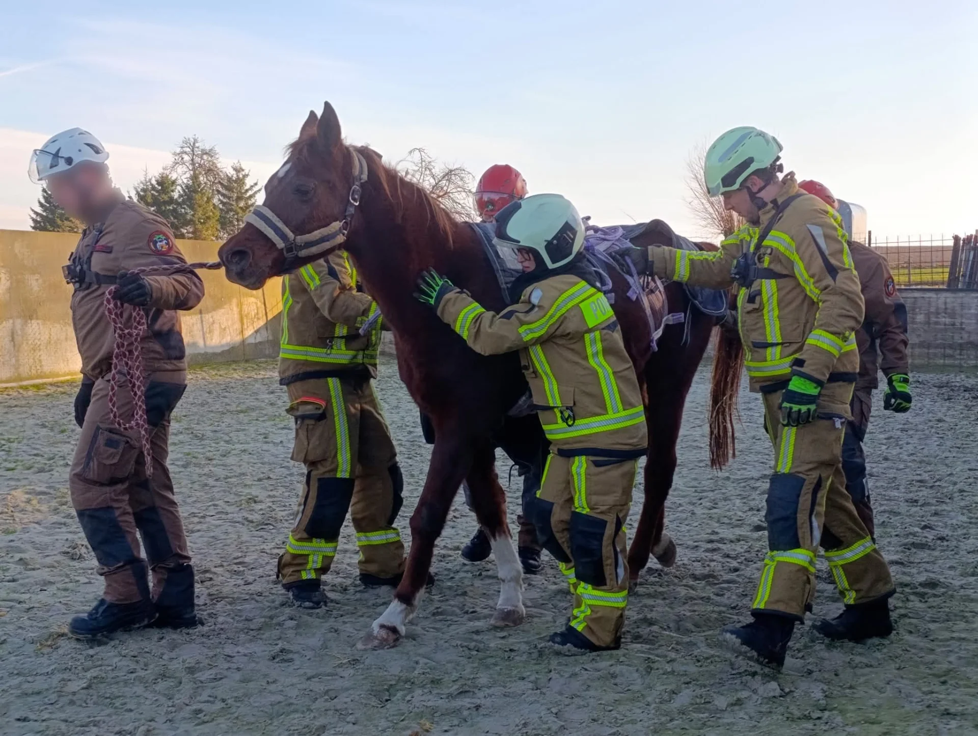 Grâce à l’intervention conjointe des équipes de secours et à une manutention sécurisée, la jument a pu être relevée sans incident. La manœuvre a été réalisée avec le soutien du Dr Marczewski, vétérinaire spécialisé en urgences équines, soulignant une collaboration efficace entre services.