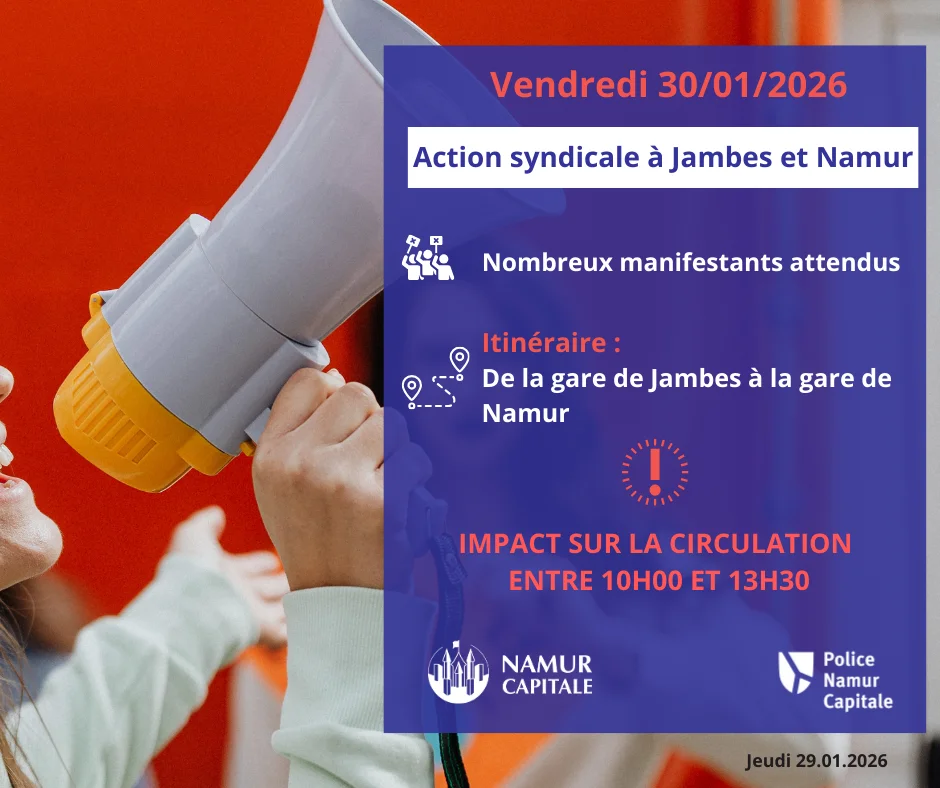 Vendredi 30 janvier 2026, une action syndicale multi-secteurs de la CGSP se déroulera à Namur.