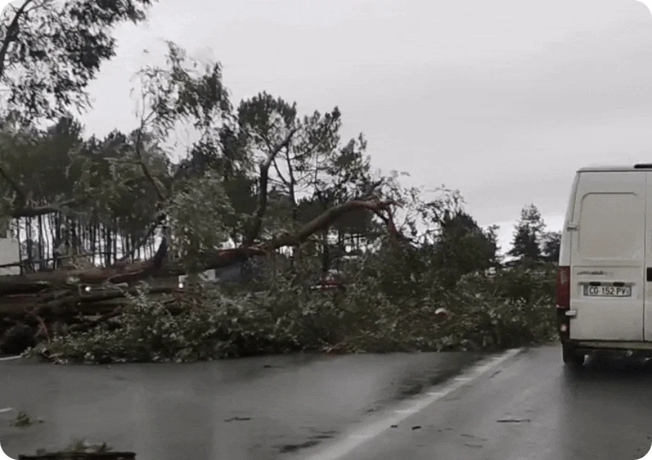 Le phénomène a également engendré d’importantes difficultés de circulation, notamment sur l’autoroute A63, que la tornade a survolée. Plusieurs arbres sont tombés sur les voies, contraignant les automobilistes à circuler temporairement sur la bande d’arrêt d’urgence, le temps que les services autoroutiers interviennent pour sécuriser et dégager la chaussée.