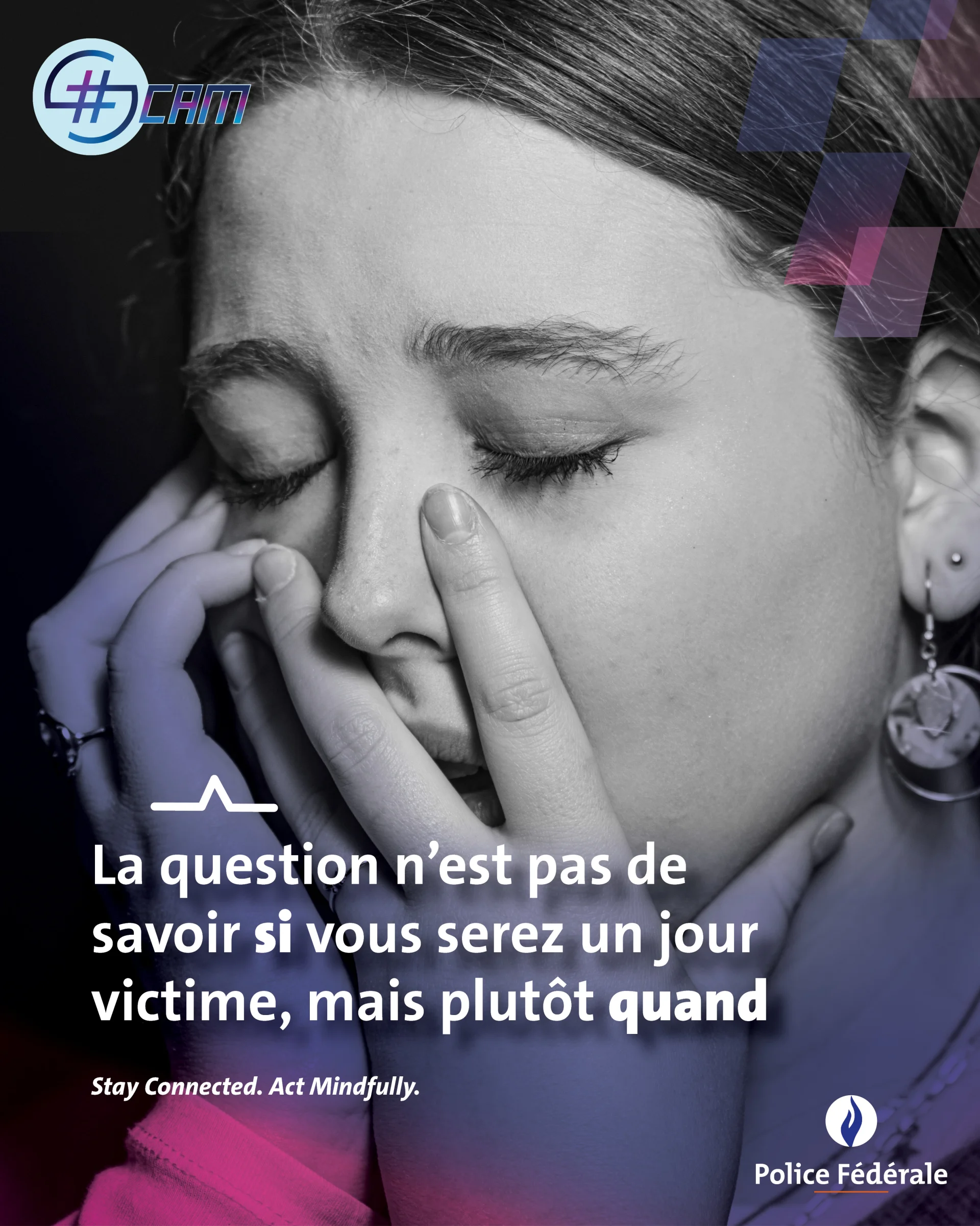 Le nom #SCAM n’a pas été choisi au hasard. En anglais, il signifie « arnaque », mais il véhicule aussi un message clair : “Stay Connected. Act Mindfully.” Autrement dit, rester connecté, tout en agissant avec discernement.
