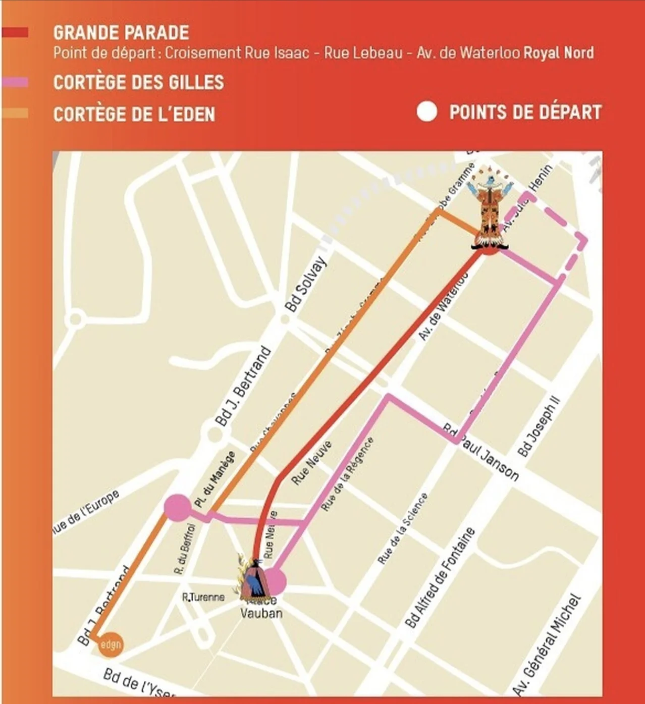 Les premiers Gilles, reconnaissables à leurs sabots, leurs chapeaux à plumes et leurs paniers remplis d’oranges, rejoindront le cortège entre 16h15 et 16h30. Les groupes convergeront ensuite vers la place Vauban, où se dérouleront les présentations officielles, animations musicales et remises de prix.