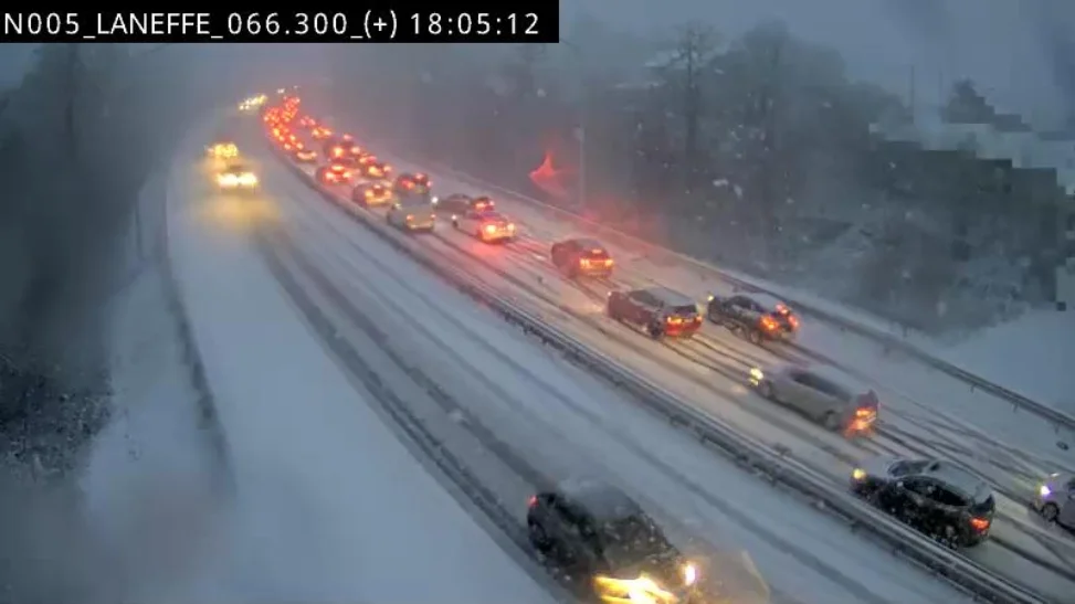 Par ailleurs, sur la N5-E420 en direction de Philippeville, à hauteur de Laneffe (BK66), les fortes chutes de neige rendent le passage difficile. Les véhicules sont complètement arrêtés à l’approche de la côte de Laneffe, la situation étant également jugée très dangereuse.
