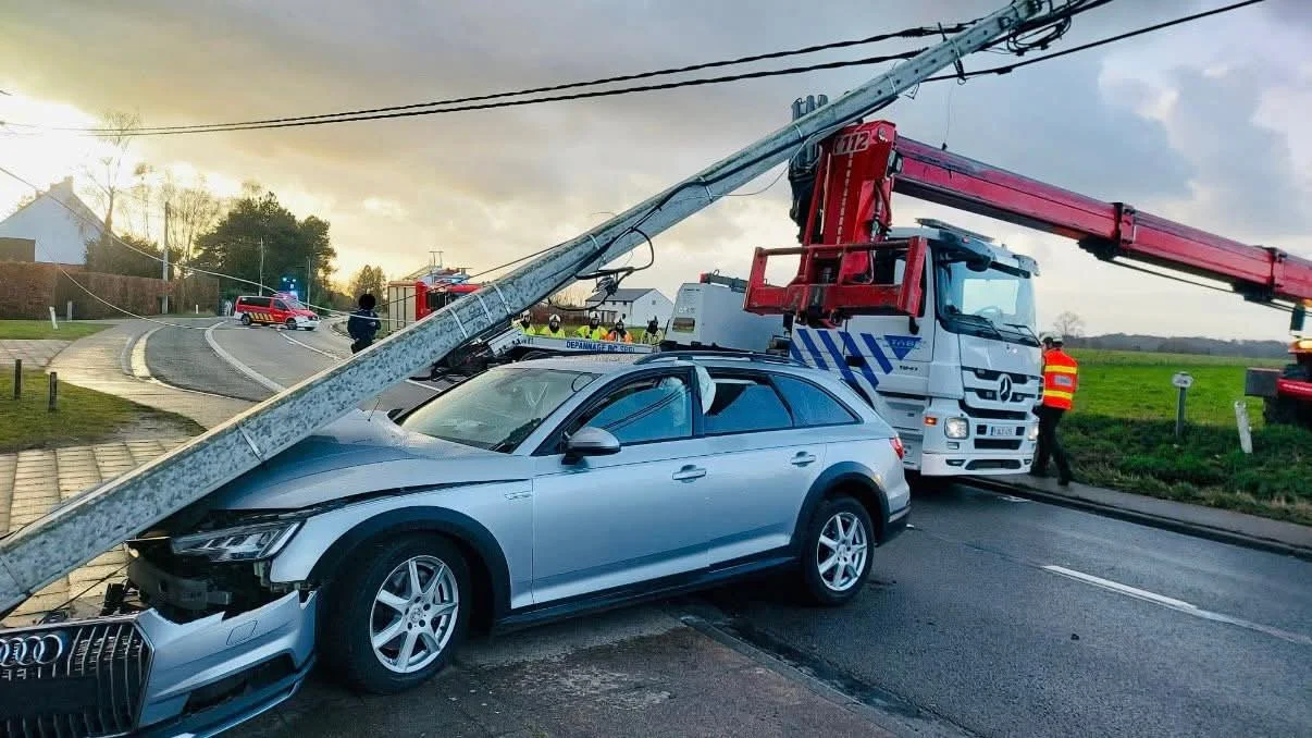 Les pompiers sont intervenus avec un véhicule de commandement, un camion de désincarcération ainsi qu’une grue télescopique. Cette dernière a permis de stabiliser le poteau, évitant toute aggravation de la situation. Le gestionnaire de réseau Ores a également été mobilisé afin de sécuriser les infrastructures électriques touchées.