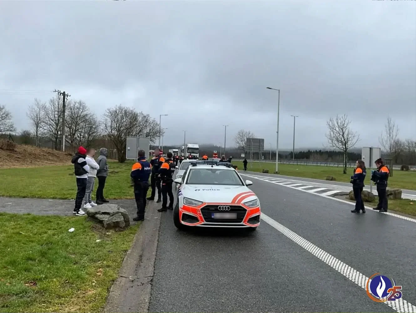 Une opération de contrôle de grande ampleur a été menée hier sur un parking autoroutier le long de l’E25, à hauteur de Houffalize, dans le cadre de la formation des aspirants agents de sécurisation de police (BAGP). L’objectif : confronter 23 recrues aux réalités du terrain, sous supervision, afin de renforcer leur maîtrise des procédures opérationnelles.