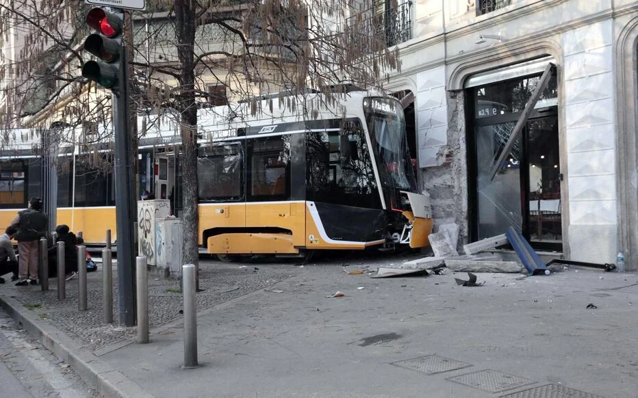Accident spectaculaire sur la ligne de tram à Milan