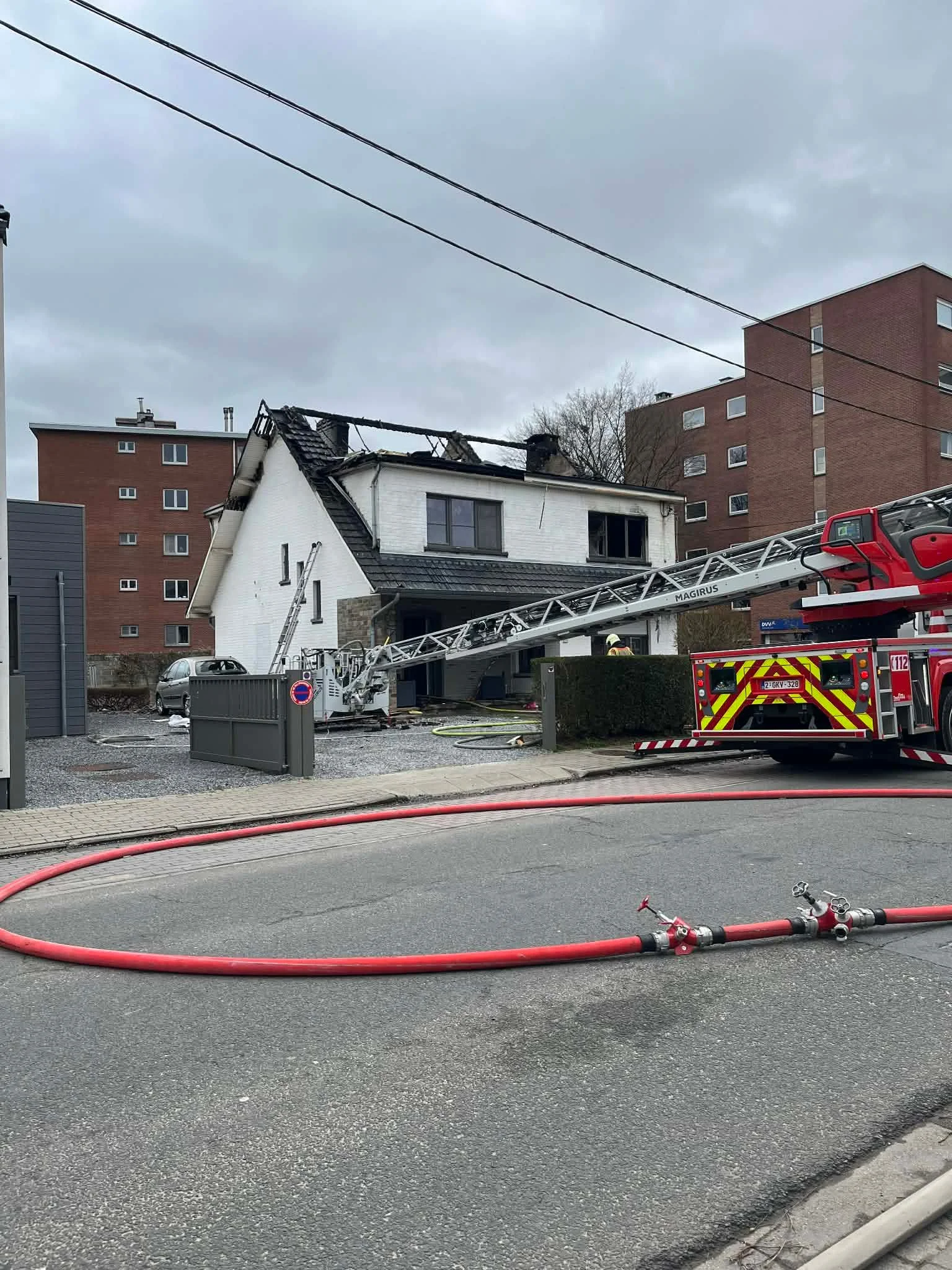 Un important dispositif de la zone de secours Hesbaye a été mobilisé en fin de matinée après le déclenchement de l’alerte vers 11h20. À l’arrivée des pompiers, la toiture de la maison était entièrement embrasée, nécessitant une intervention rapide et massive pour éviter toute propagation aux habitations voisines.