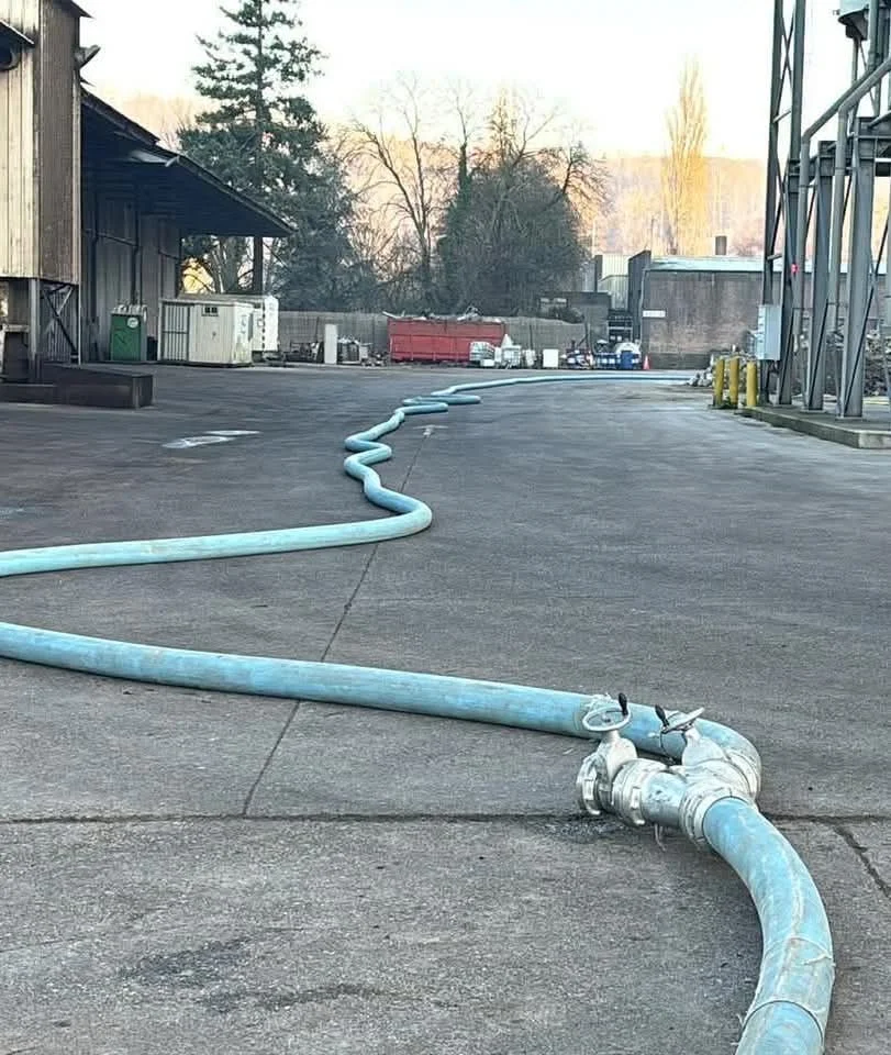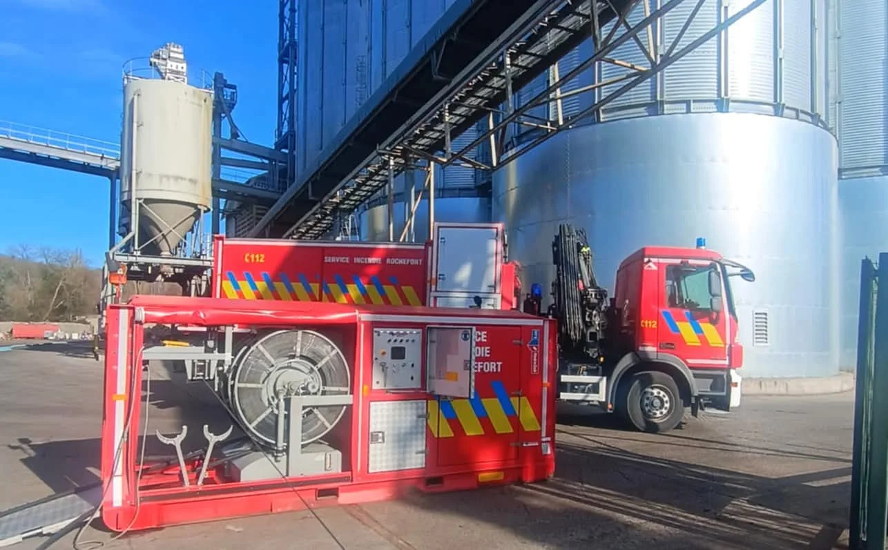Le renfort portait principalement sur une alimentation en eau de grande capacité afin de soutenir les opérations d’extinction. Pour répondre à cette exigence, la berce équipée de la pompe Hytrans 150 a été déployée. Ce dispositif permet d’acheminer d’importants volumes d’eau sur de longues distances, un atout déterminant lors d’incendies industriels.