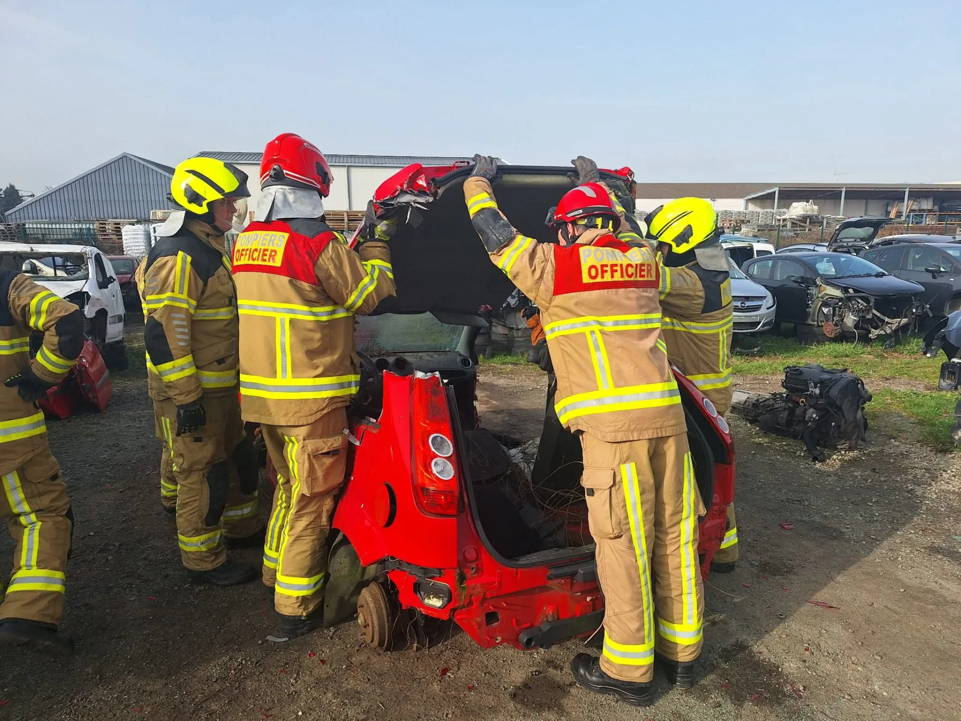 Deux véhicules ont été mis à disposition par l’entreprise Démolition Falque, offrant ainsi aux secouristes la possibilité de s’entraîner dans des conditions proches de celles rencontrées sur le terrain.
