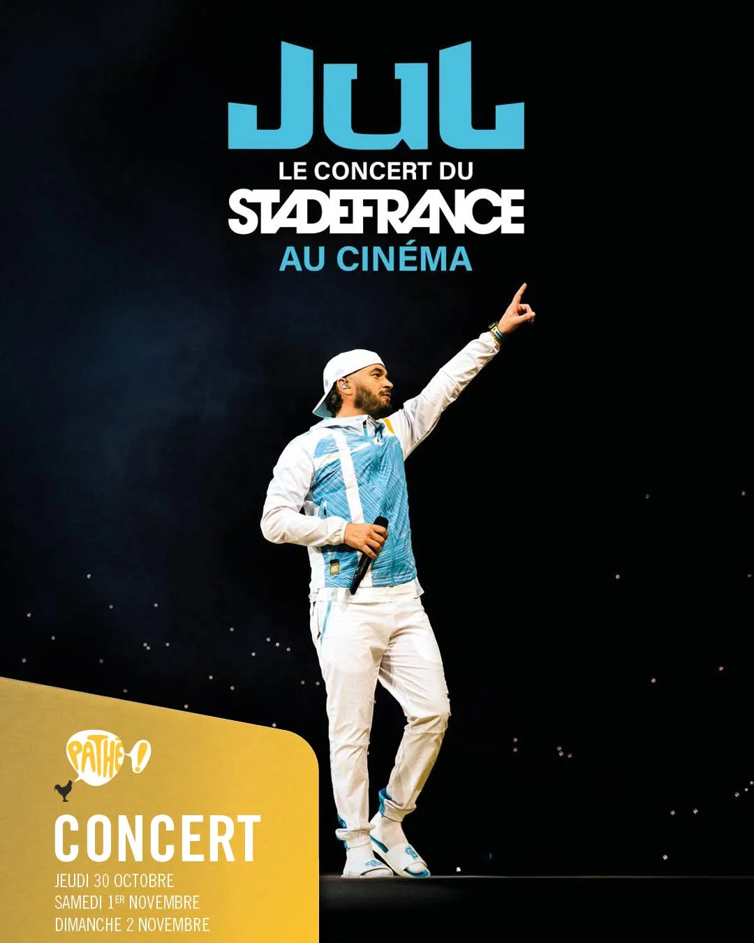 Après avoir enflammé le Stade de France lors d’un show légendaire, JUL offre à ses fans une séance de rattrapage exceptionnelle. Son concert événement sera projeté dans les cinémas Pathé à travers la France.