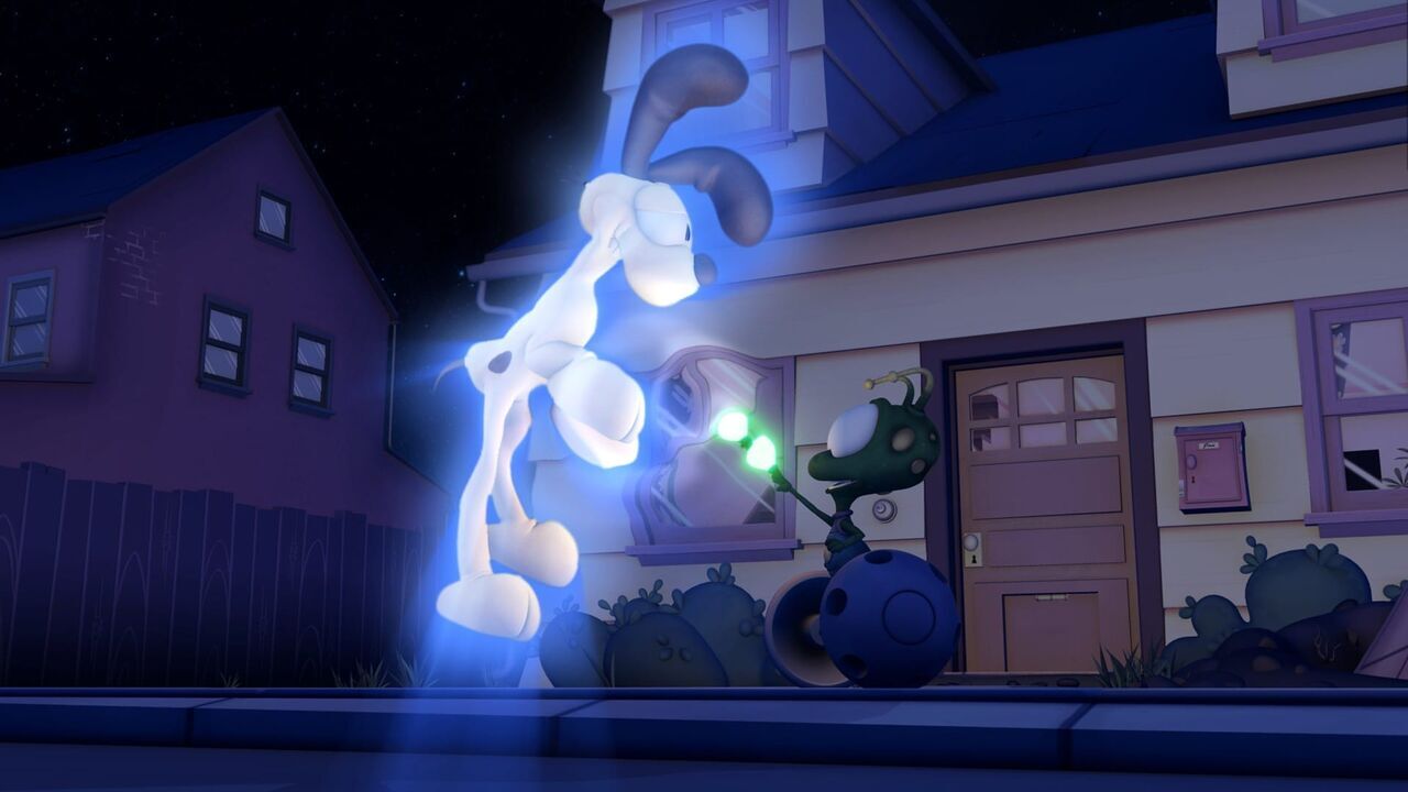 04h40–04h50BunniculaMina, après avoir lavé Chester, s'amuse à l'habiller comme un humain, ce qu'il apprécie énormément. Il se met à rêver de devenir réellement un humain, tout en sachant bien que c'e…