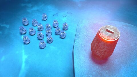 Grizzy observe les Lemmings piler de la glace de la banquise puis la passer au batteur pour faire du granité, mais le résultat est sans saveur.