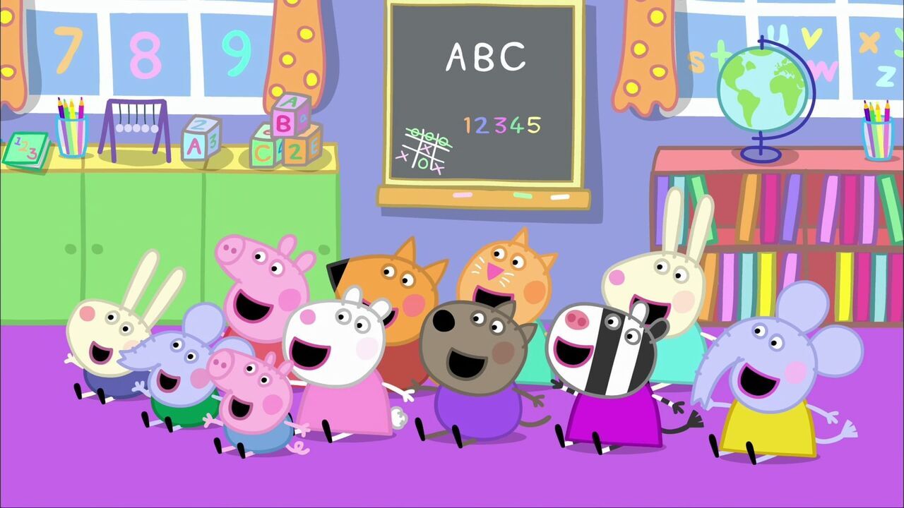 08h35–08h37Peppa PigMadame Gazelle a apporté ses animaux de compagnie, deux cochons d'Inde, Brian et Ginger, pour les montrer aux enfants. Tous les enfants trouvent qu'ils sont adorables. Madame Gaze…