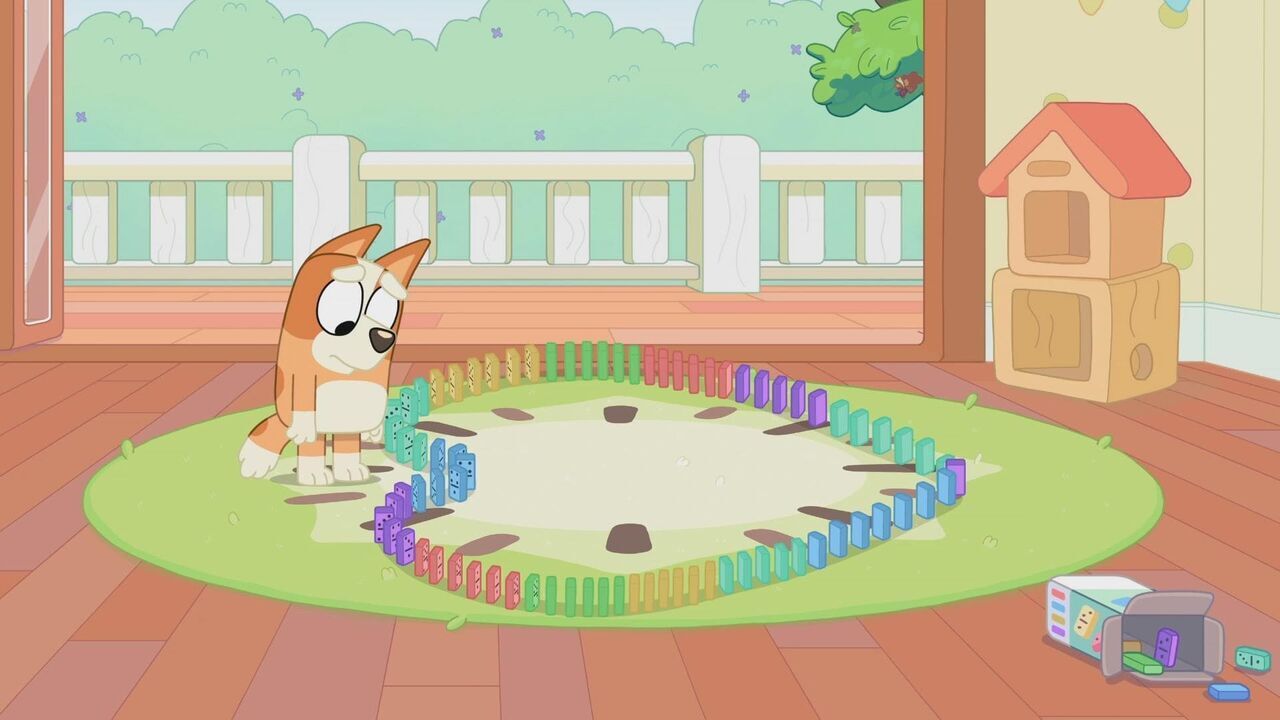 Après une longue journée, Bluey et sa famille veulent faire des choses différentes. Maman demande à tout le monde de jouer aux statues musicales.