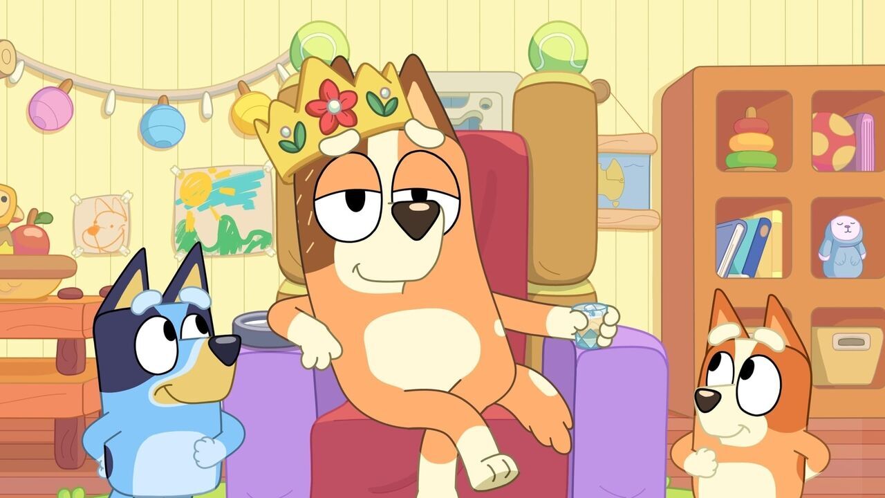 Bingo et Bluey jouent tour à tour la reine et sa servante. Quand elles veulent être servantes en même temps, c'est maman qui est couronnée reine après le règne chaotique de papa.